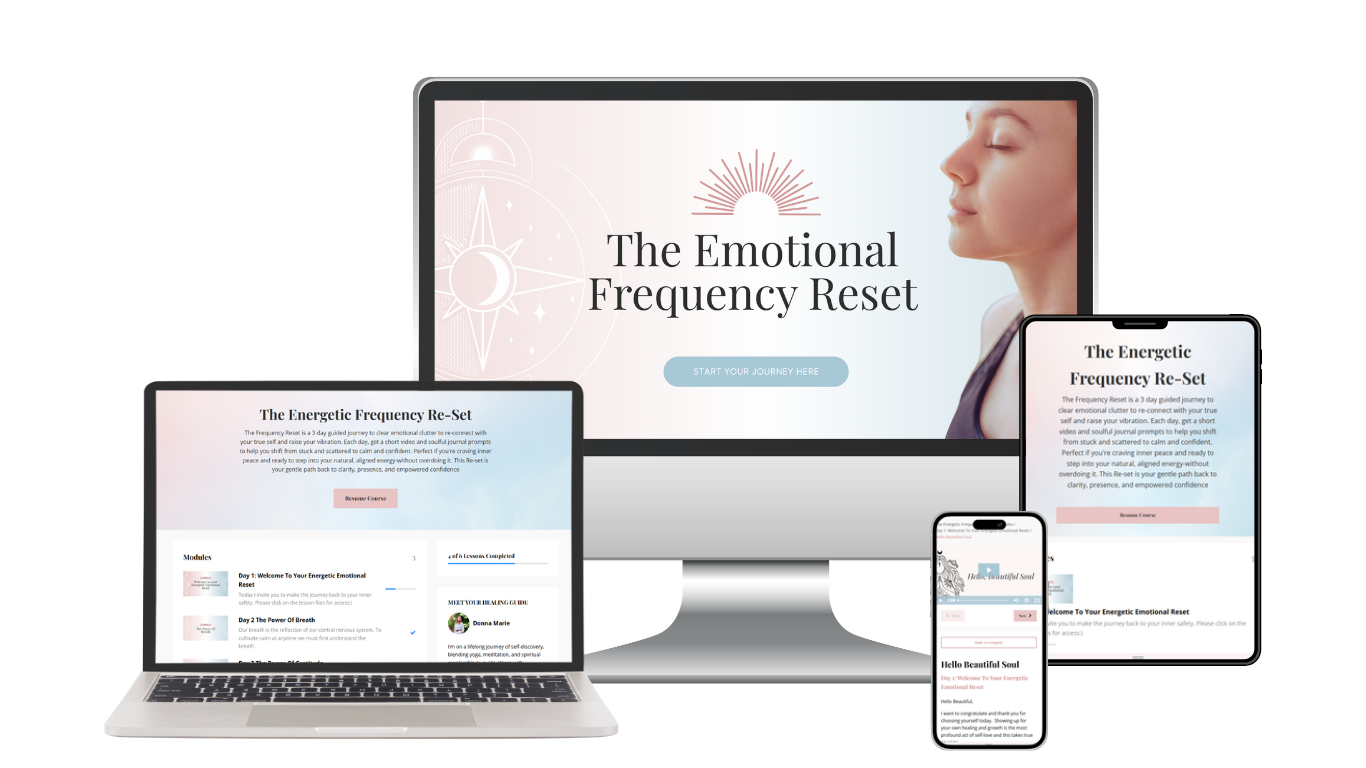 Try the Emotional Frequency Reset for a full 3 days. This is a risk-free investment in yourself. You’ll keep lifetime access to all the tools and practices inside the program, and when you commit to showing up, you’ll experience real shifts in your energy and emotional state.